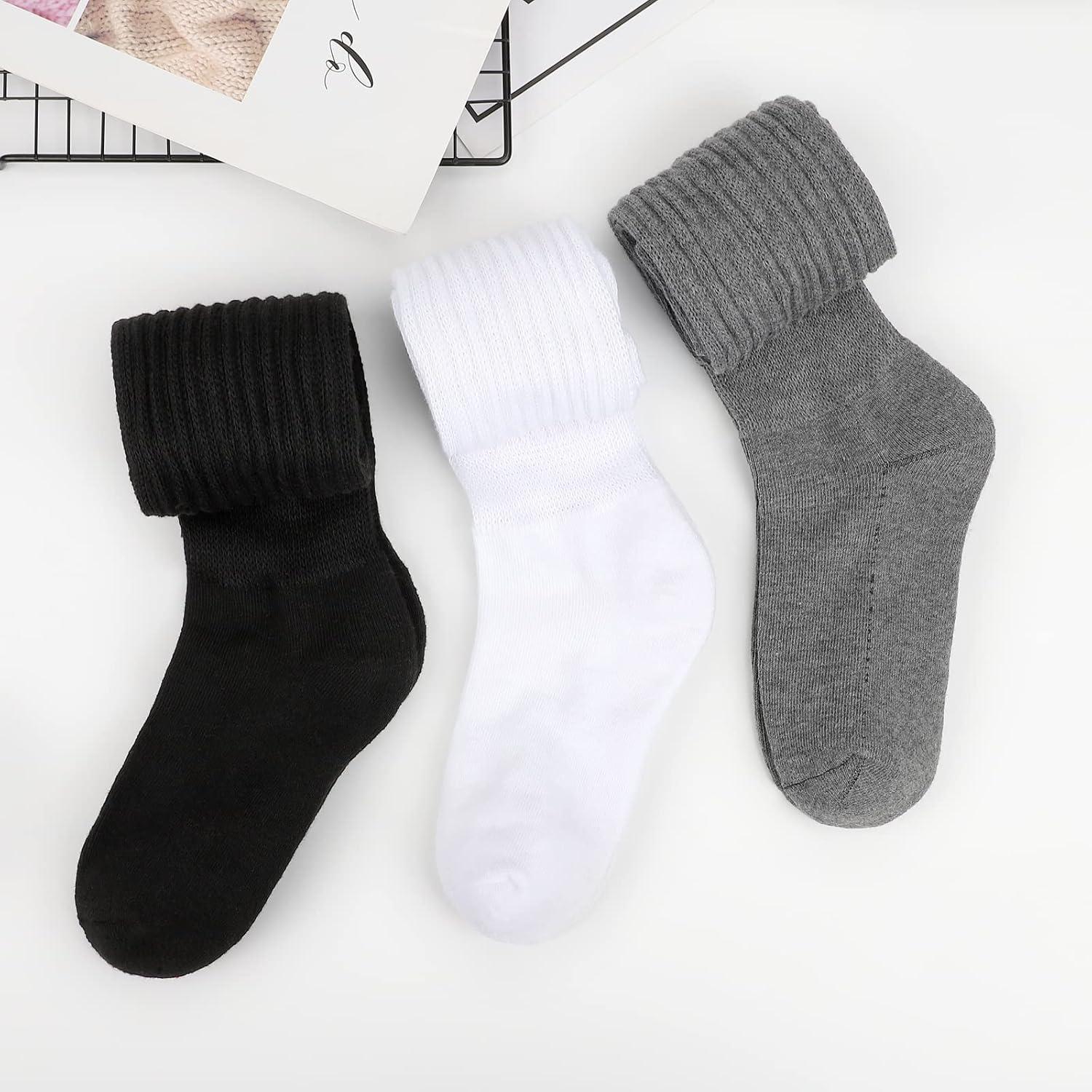 KEREDA Slouch Socks Women Knee High Scrunch Scrunchie Socks 3 Pairs Size 6-11(Black-grey-white)